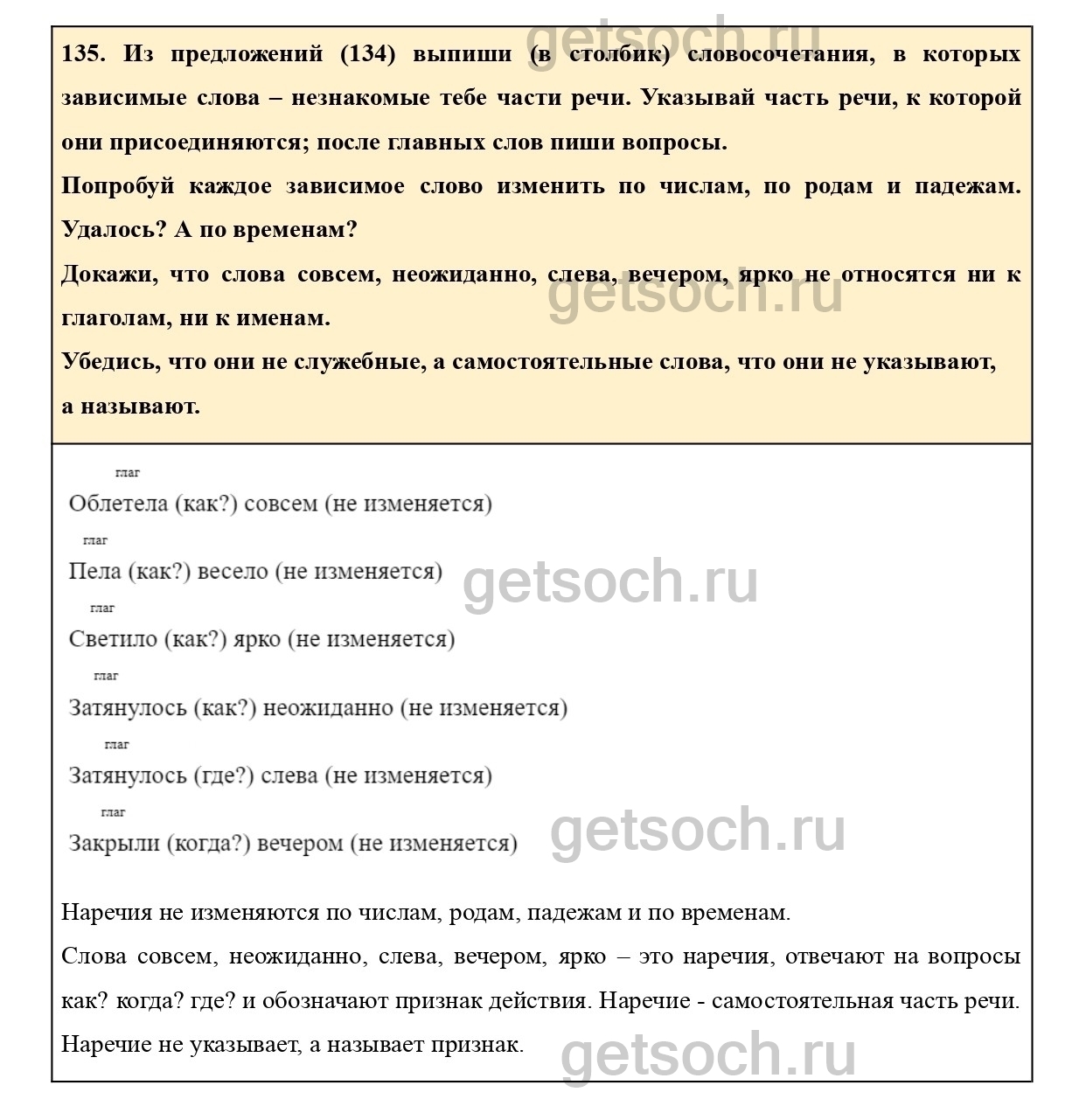 Рассмотрим ответы на Упражнение 135 из учебника по русскому языку для 4 класса Соловейчика