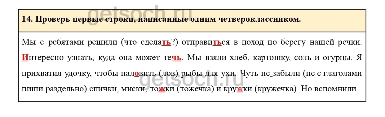 Рассмотрим ответы на Упражнение 14 из учебника по русскому языку для 4 класса Соловейчика