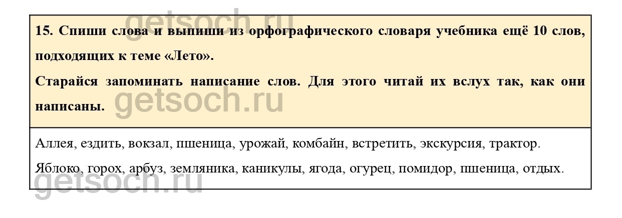 15. Спиши слова и выпиши из орфографического словаря учебника ещё 10 слов, подходящих к теме «Лето».