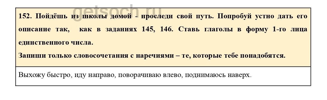 152. Пойдёшь из школы домой – проследи свой путь. Попробуй устно дать его описание так, как в заданиях 145, 146. Ставь глаголы в форму 1-го лица единственного числа.