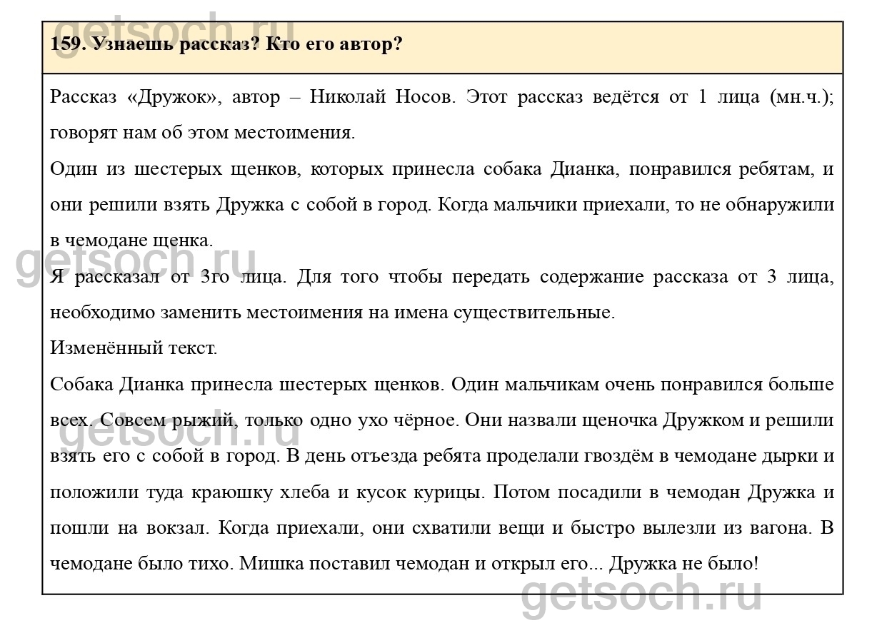 Рассмотрим ответы на Упражнение 159 из учебника по русскому языку для 4 класса Соловейчика