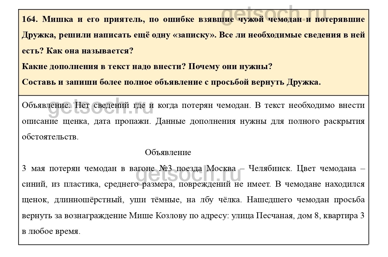 164. Мишка и его приятель, по ошибке взявшие чужой чемодан и потерявшие Дружка, решили написать ещё одну «записку». Bce ли необходимые сведения в ней есть? Как она называется?