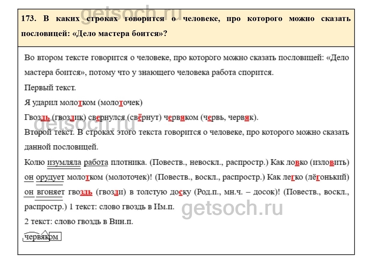 Рассмотрим ответы на Упражнение 173 из учебника по русскому языку для 4 класса Соловейчика