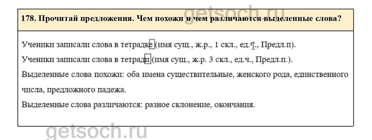 Рассмотрим ответы на Упражнение 178 из учебника по русскому языку для 4 класса Соловейчика