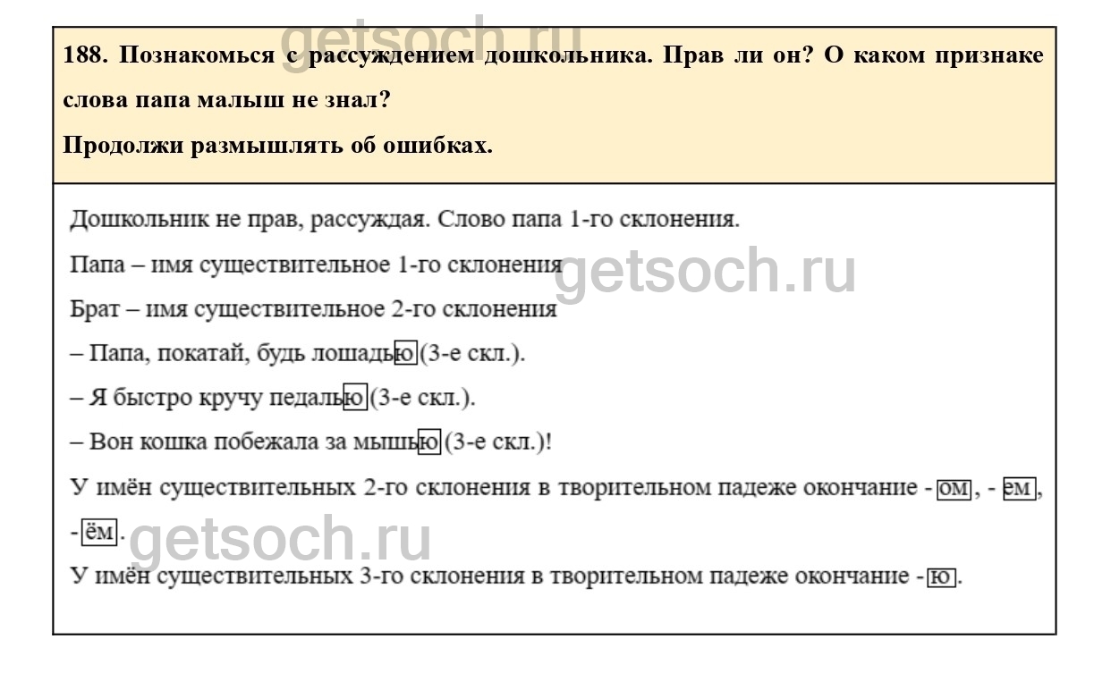 Рассмотрим ответы на Упражнение 188 из учебника по русскому языку для 4 класса Соловейчика