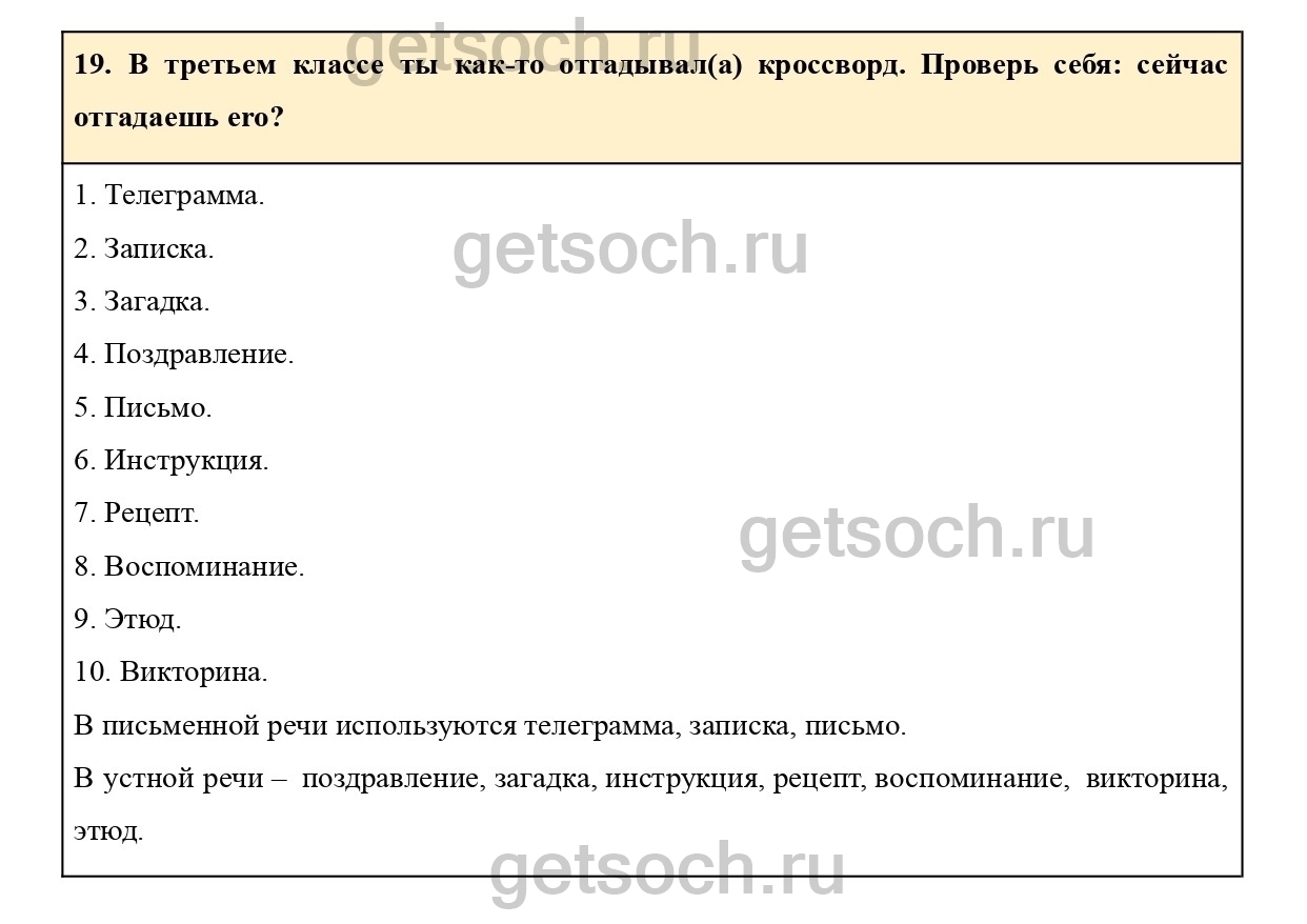 Рассмотрим ответы на Упражнение 19 из учебника по русскому языку для 4 класса Соловейчика