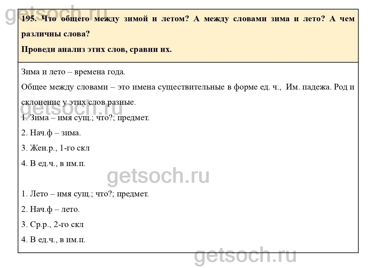 195. Что общего между зимой и летом? A между словами зима и лето? A чем различны слова?
