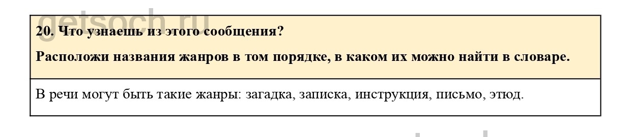 Рассмотрим ответы на Упражнение 20 из учебника по русскому языку для 4 класса Соловейчика