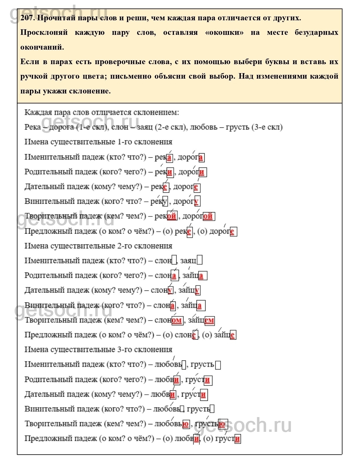 Рассмотрим ответы на Упражнение 207 из учебника по русскому языку для 4 класса Соловейчика