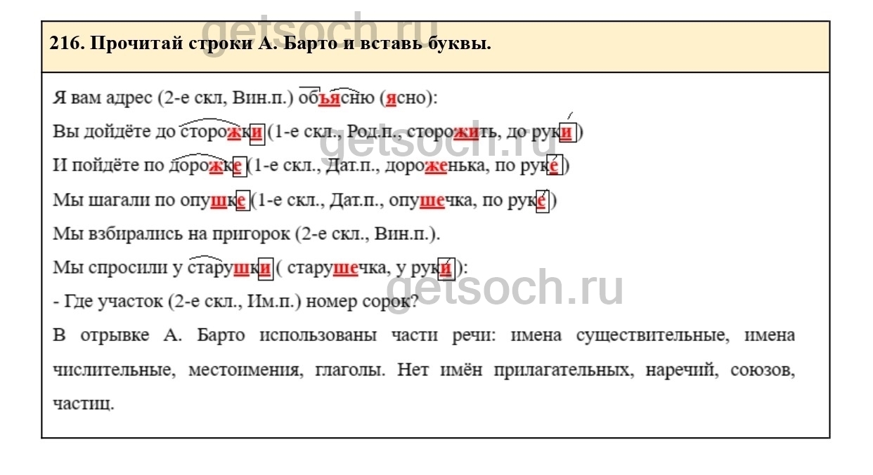 Рассмотрим ответы на Упражнение 216 из учебника по русскому языку для 4 класса Соловейчика