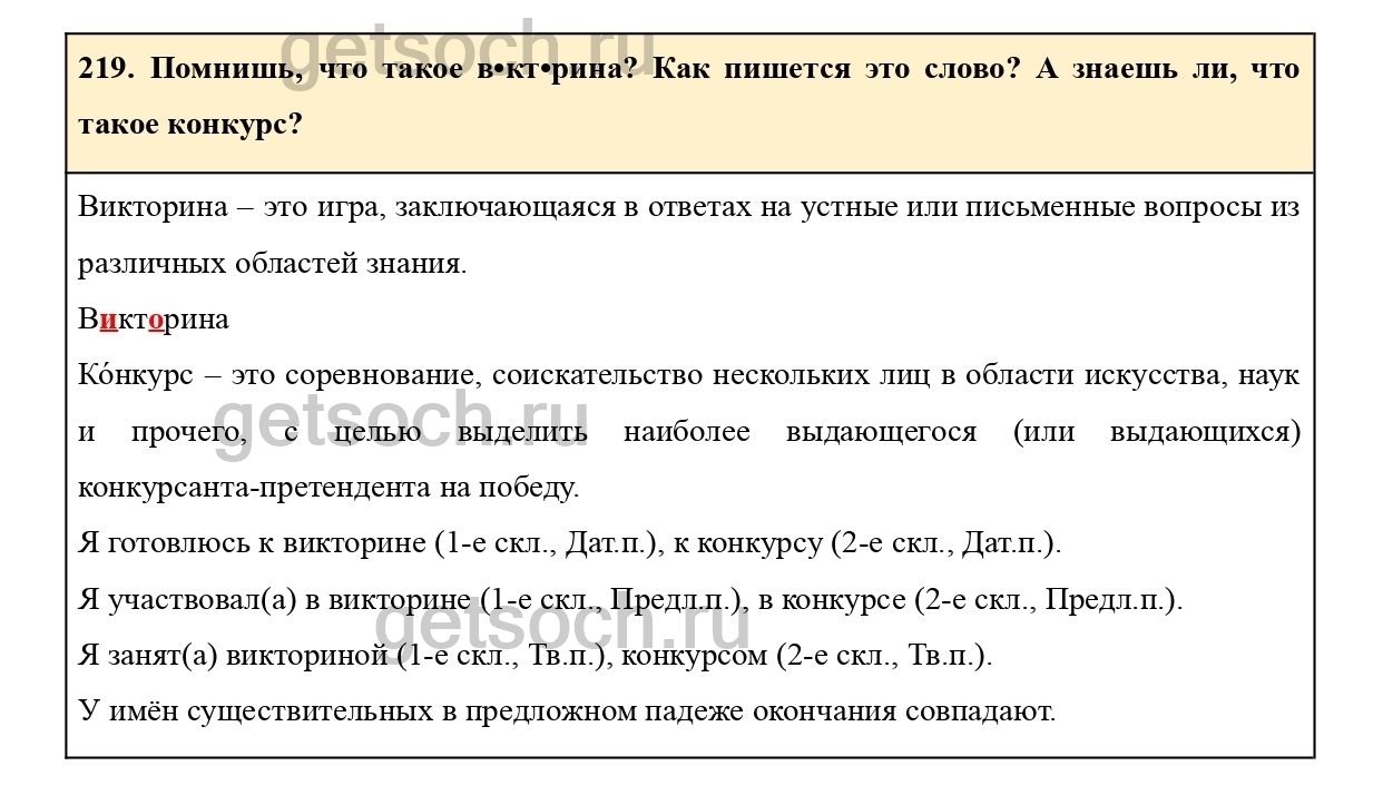 219. Помнишь, что такое в•кт•рина? Как пишется это слово? А знаешь ли, что такое конкурс?