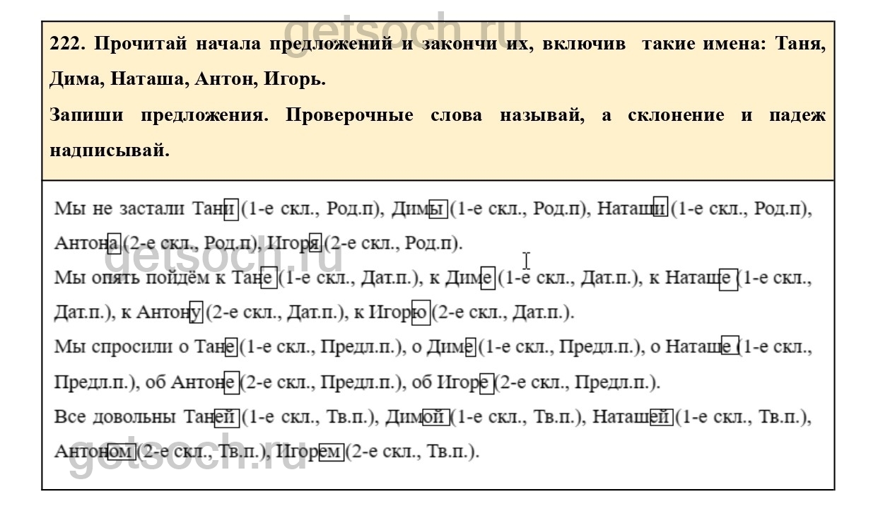 Рассмотрим ответы на Упражнение 222 из учебника по русскому языку для 4 класса Соловейчика