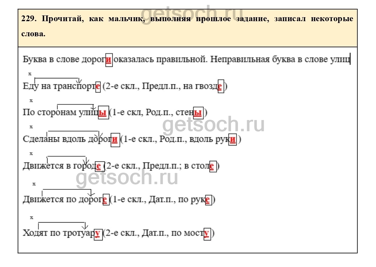 Рассмотрим ответы на Упражнение 229 из учебника по русскому языку для 4 класса Соловейчика