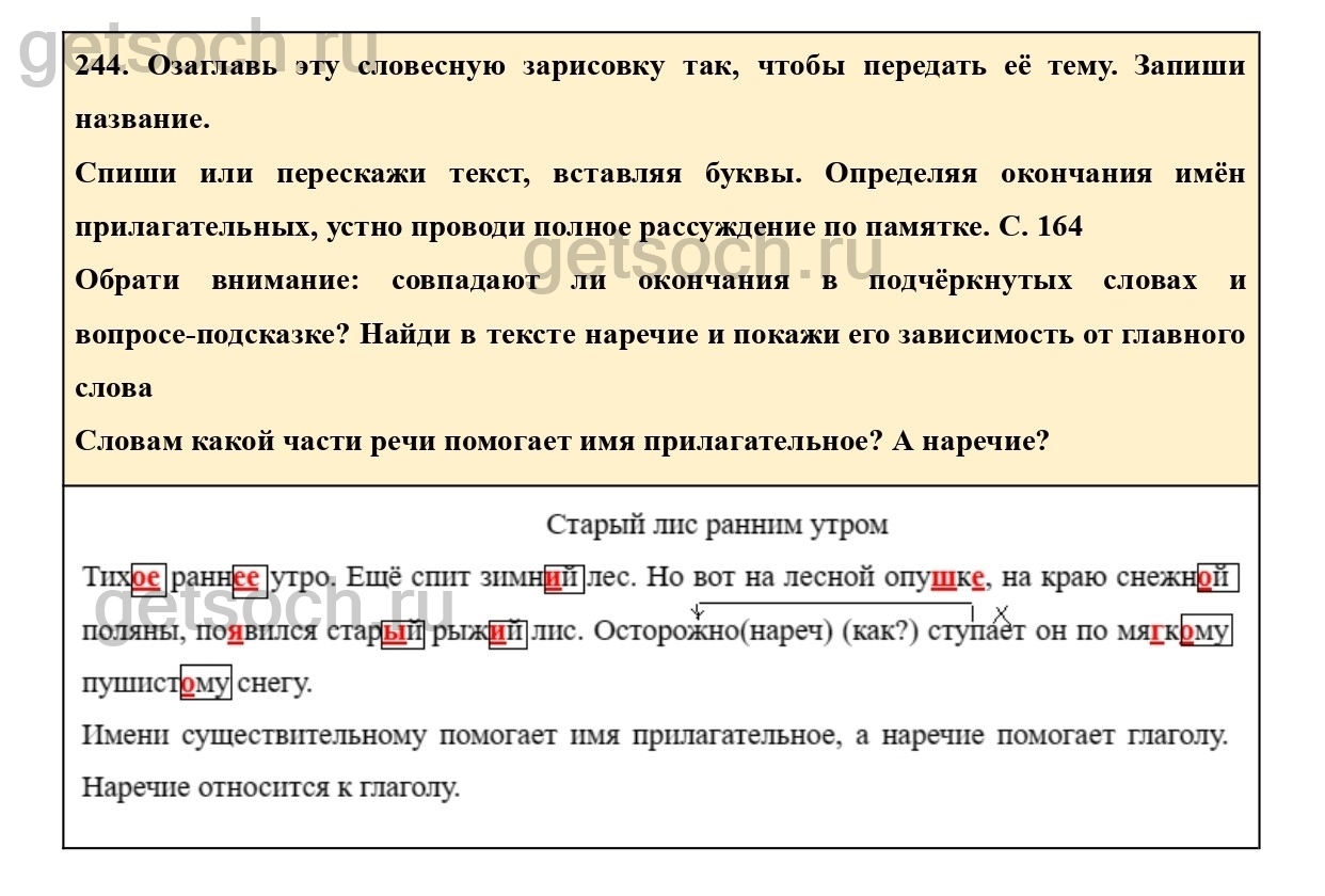 Рассмотрим ответы на Упражнение 244 из учебника по русскому языку для 4 класса Соловейчика