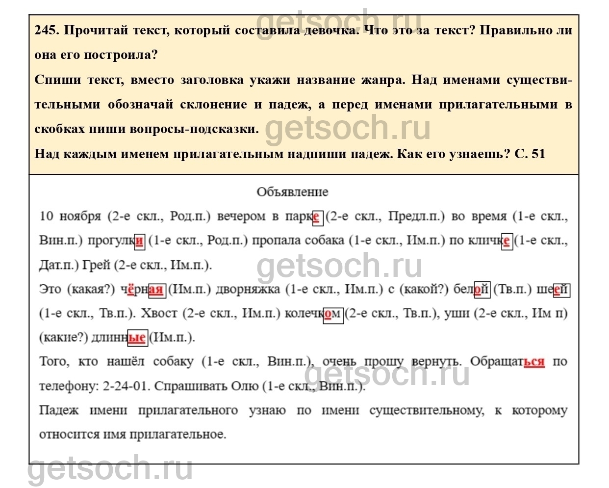Рассмотрим ответы на Упражнение 245 из учебника по русскому языку для 4 класса Соловейчика