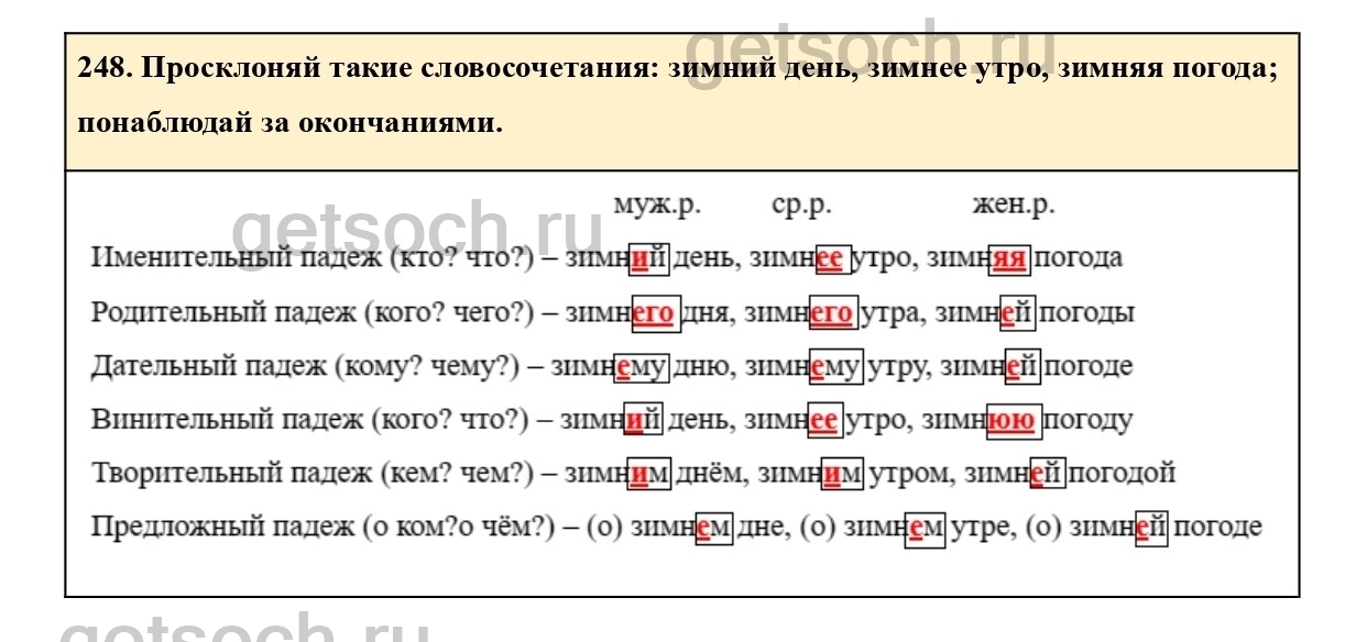 248. Просклоняй такие словосочетания: зимний день, зимнее утро, зимняя погода;