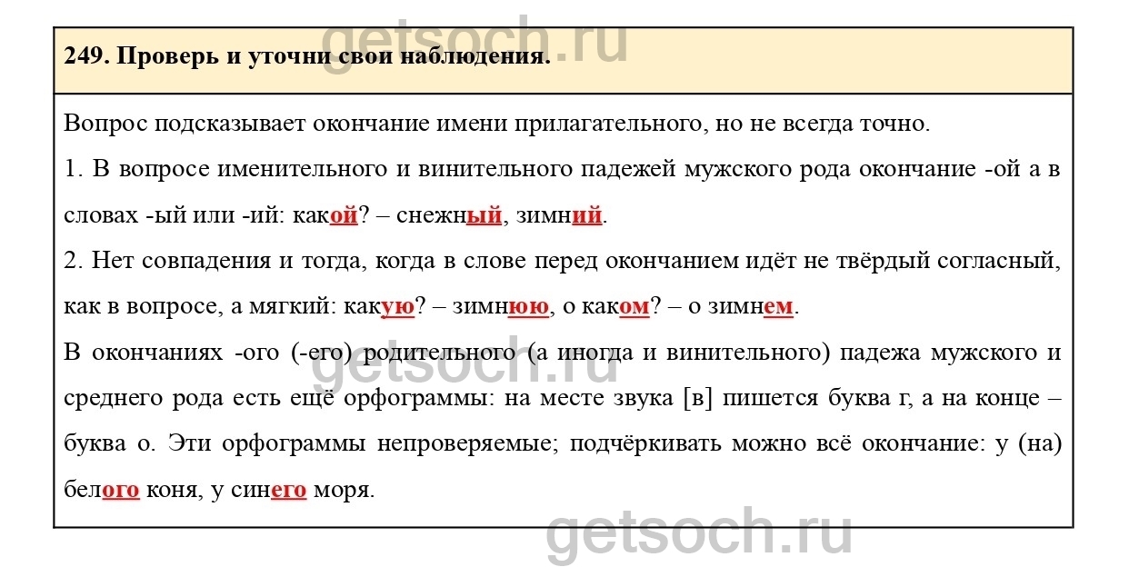 Рассмотрим ответы на Упражнение 249 из учебника по русскому языку для 4 класса Соловейчика