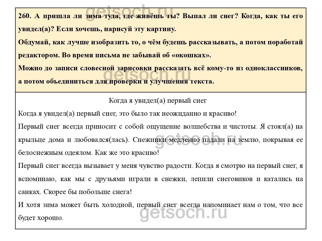 260. А пришла ли зима туда, где живёшь ты? Выпал ли снег? Когда, как ты его увидел(а)? Если хочешь, нарисуй эту картину.