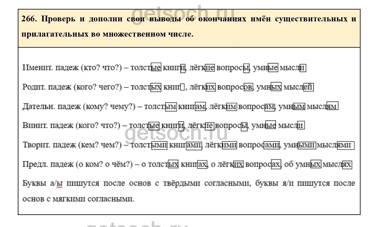 266. Проверь и дополни свои выводы об окончаниях имён существительных и прилагательных во множественном числе.