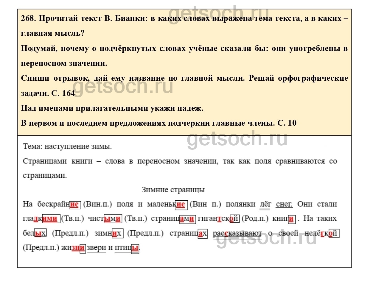 Рассмотрим ответы на Упражнение 268 из учебника по русскому языку для 4 класса Соловейчика