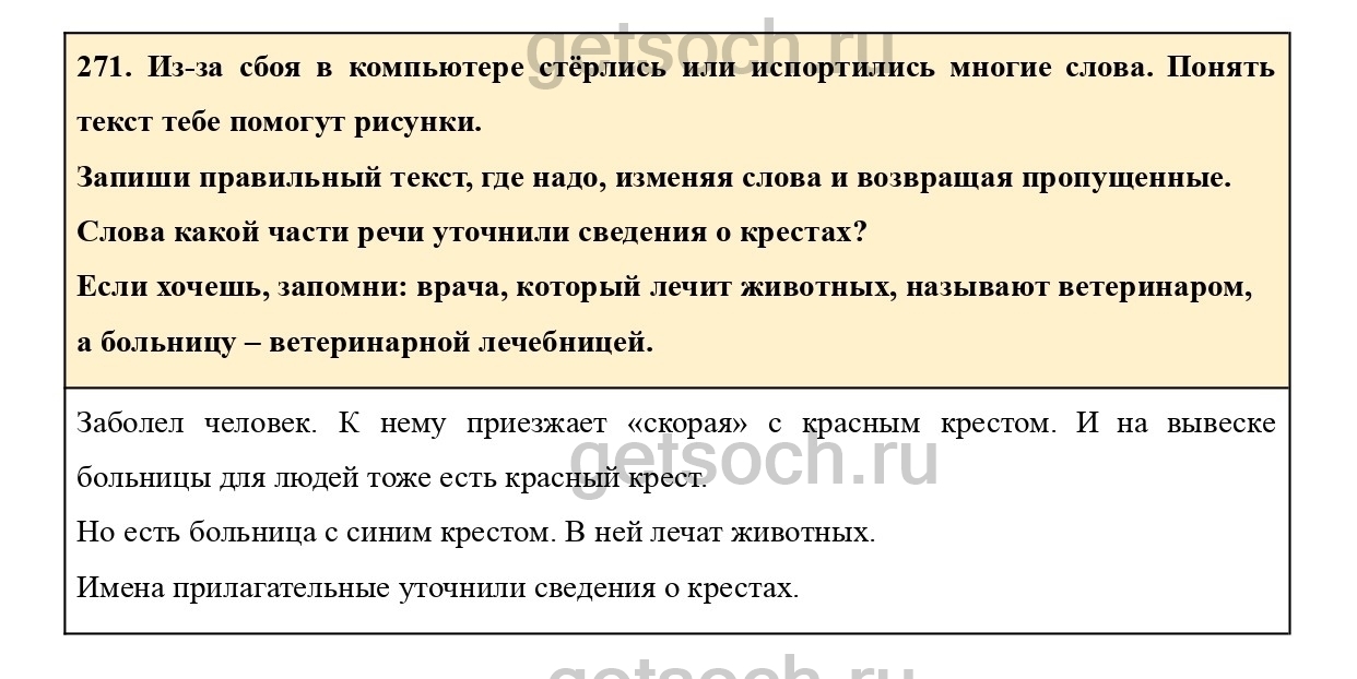 271. Из-за сбоя в компьютере стёрлись или испортились многие слова. Понять текст тебе помогут рисунки.
