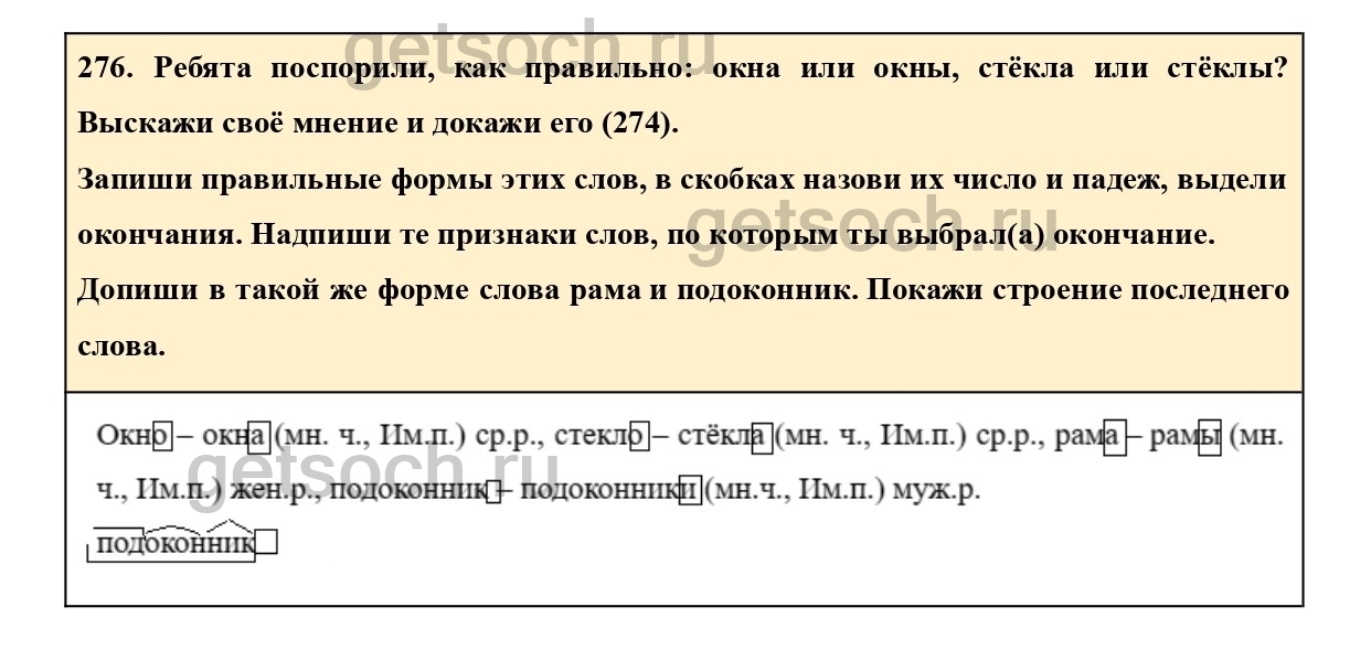 276. Ребята поспорили, как правильно: окна или окны, стёкла или стёклы? Выскажи своё мнение и докажи его (274).