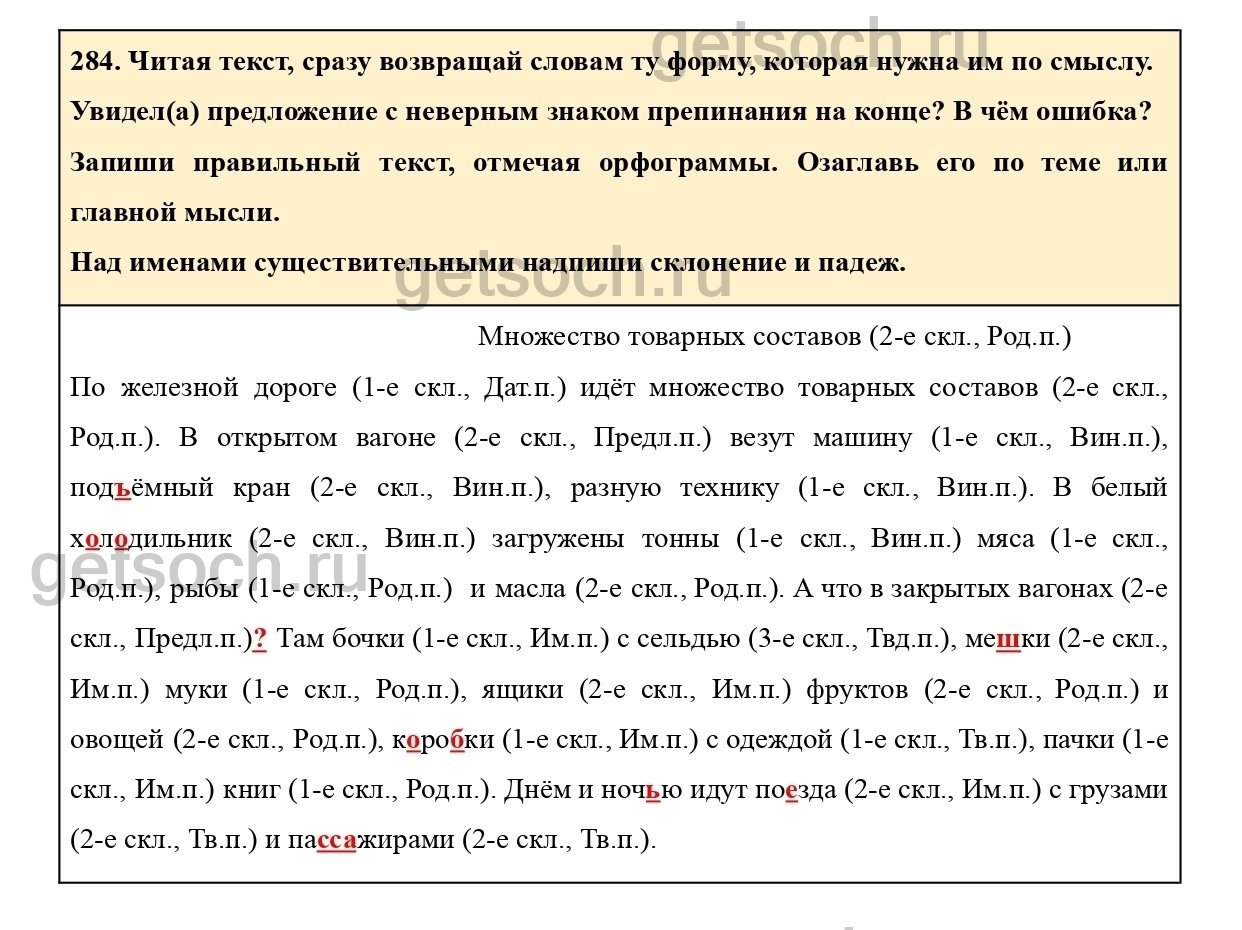 Рассмотрим ответы на Упражнение 284 из учебника по русскому языку для 4 класса Соловейчика