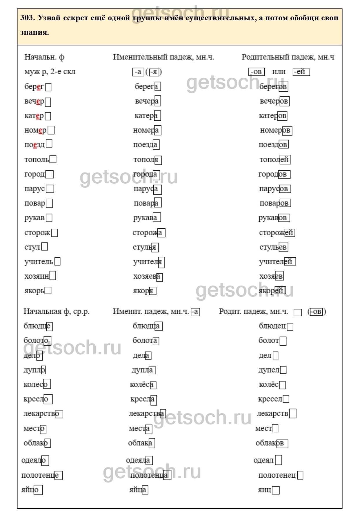 303. Узнай секрет ещё одной группы имён существительных, а потом обобщи свои знания.