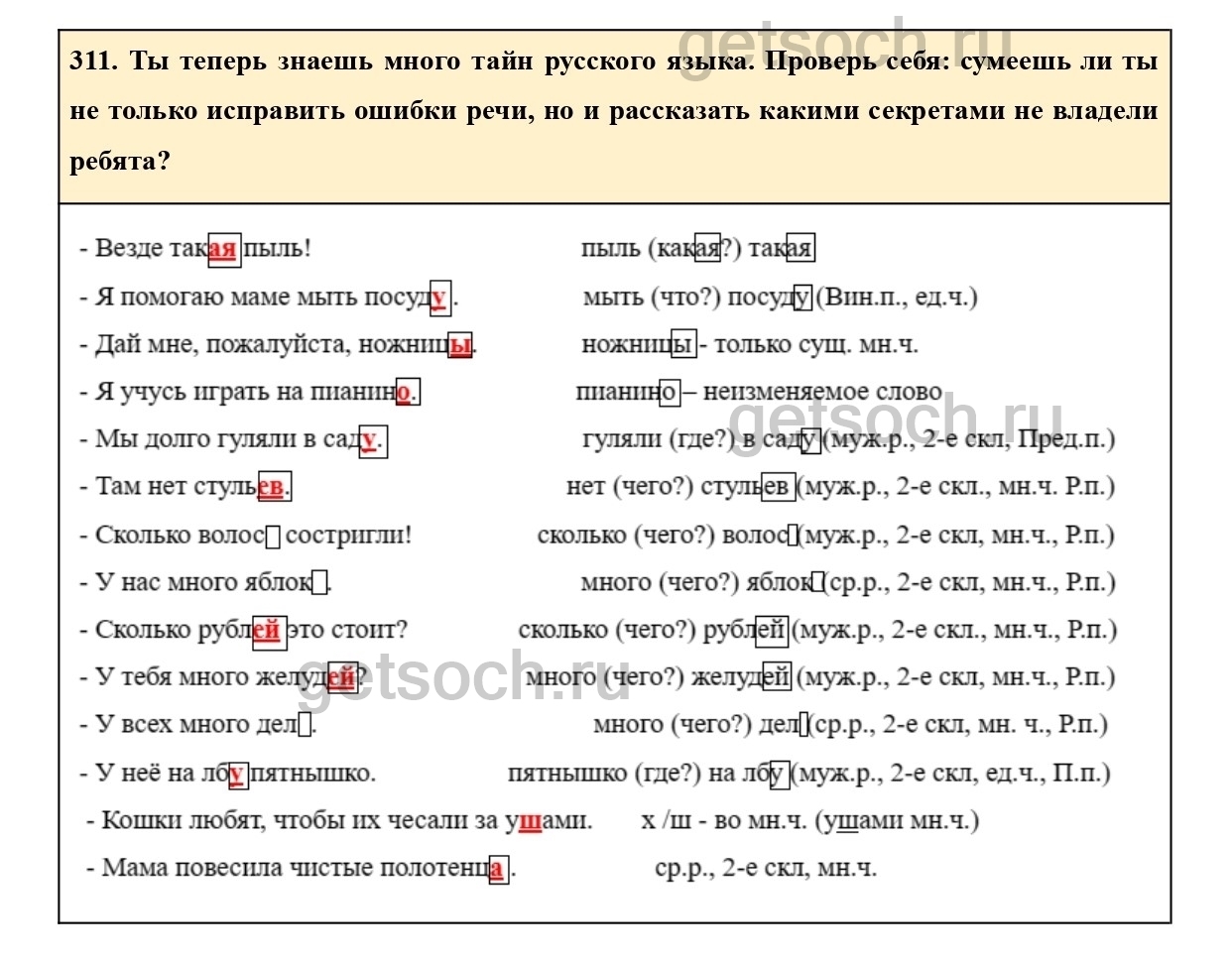 Рассмотрим ответы на Упражнение 311 из учебника по русскому языку для 4 класса Соловейчика