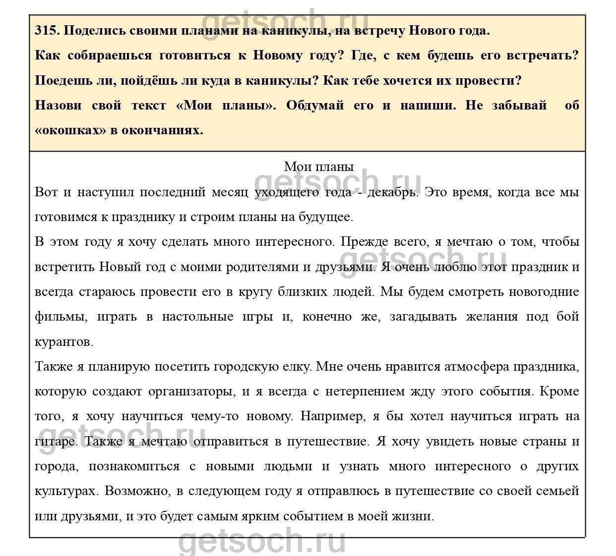 315. Поделись своими планами на каникулы, на встречу Нового года.