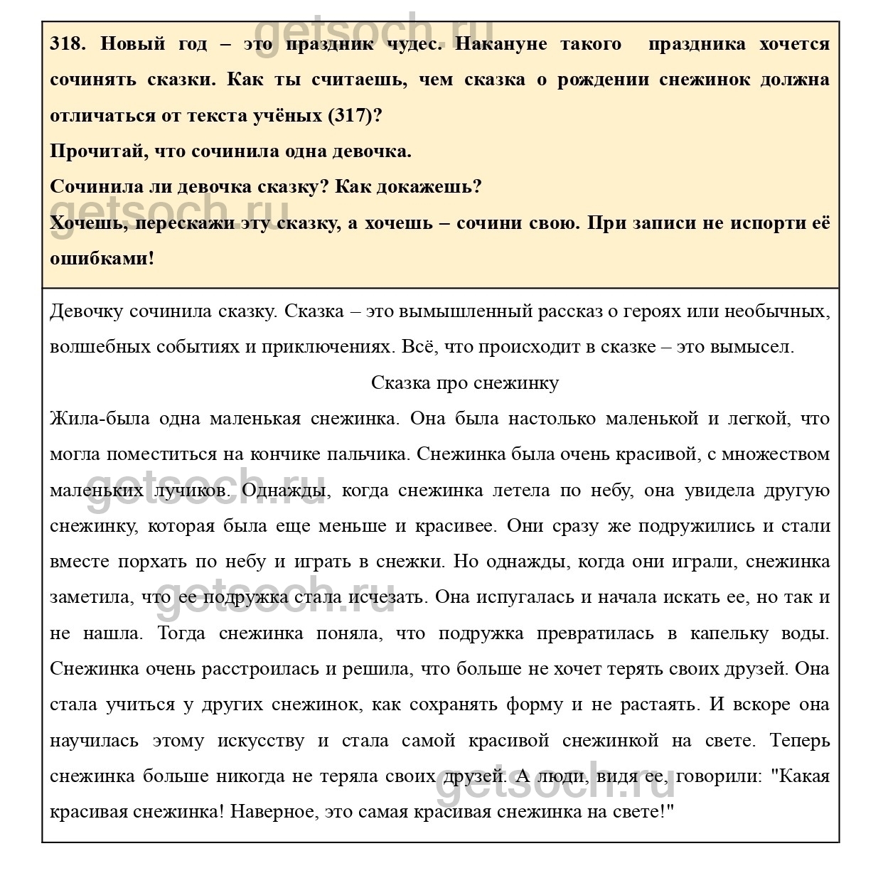 318. Новый год – это праздник чудес. Накануне такого праздника хочется сочинять сказки. Как ты считаешь, чем сказка о рождении снежинок должна отличаться от текста учёных (317)?