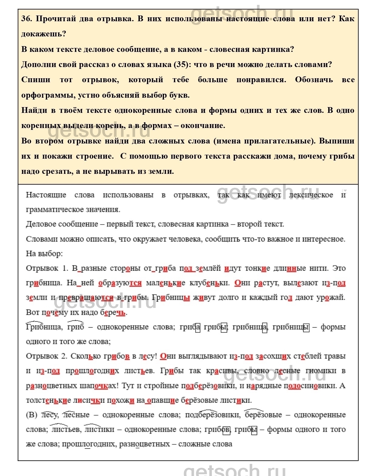 Рассмотрим ответы на Упражнение 36 из учебника по русскому языку для 4 класса Соловейчика