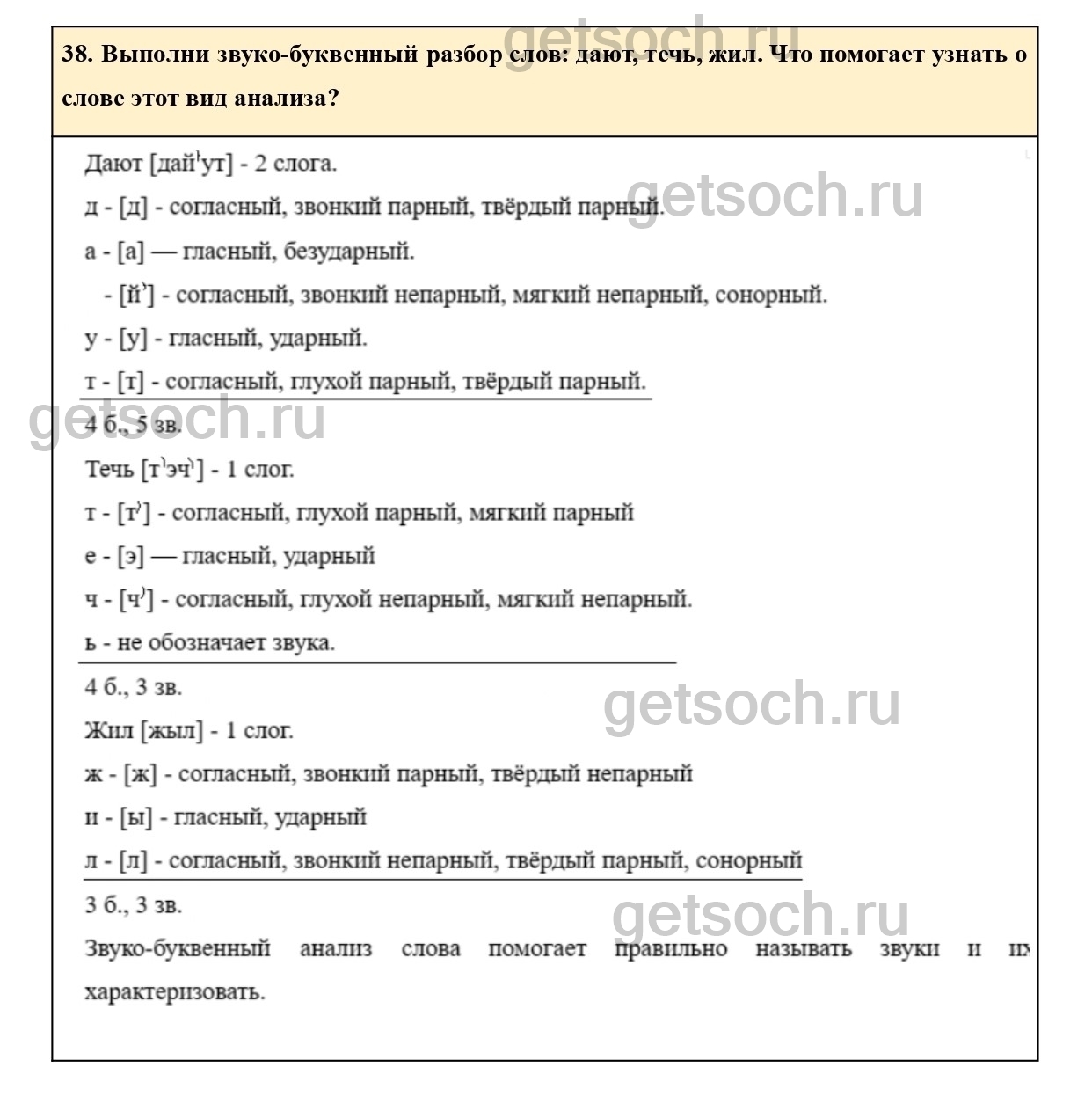 38. Выполни звуко-буквенный разбор слов: дают, течь, жил. Что помогает узнать о слове этот вид анализа?