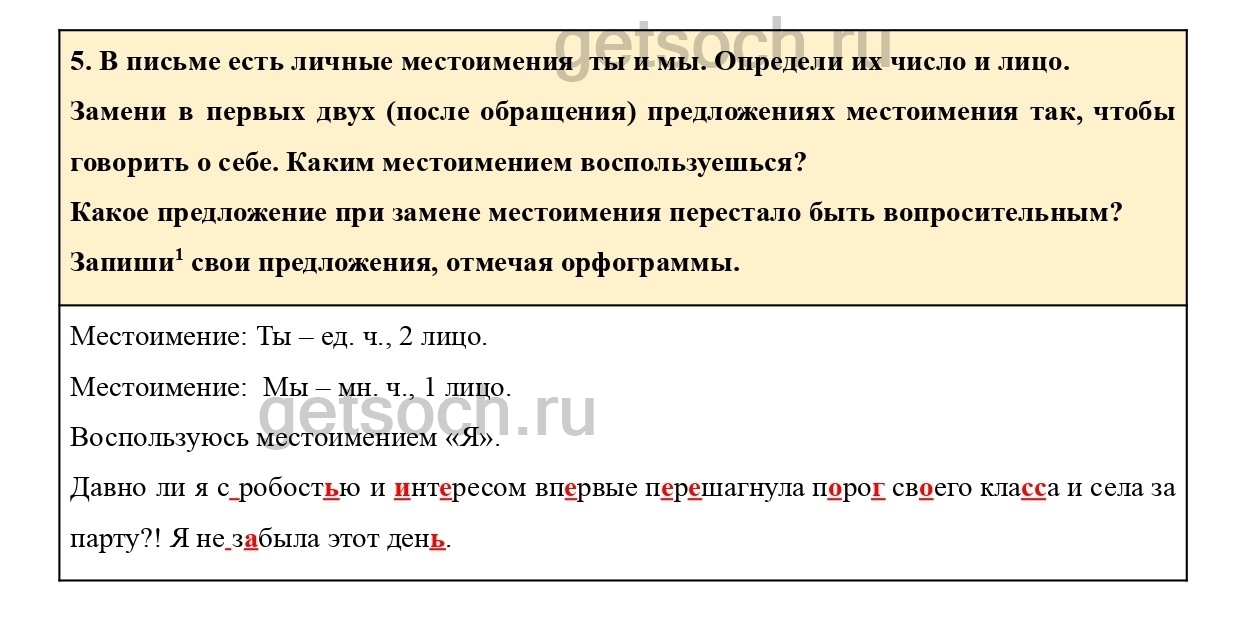 5. В письме есть личные местоимения ты и мы. Определи их число и лицо.