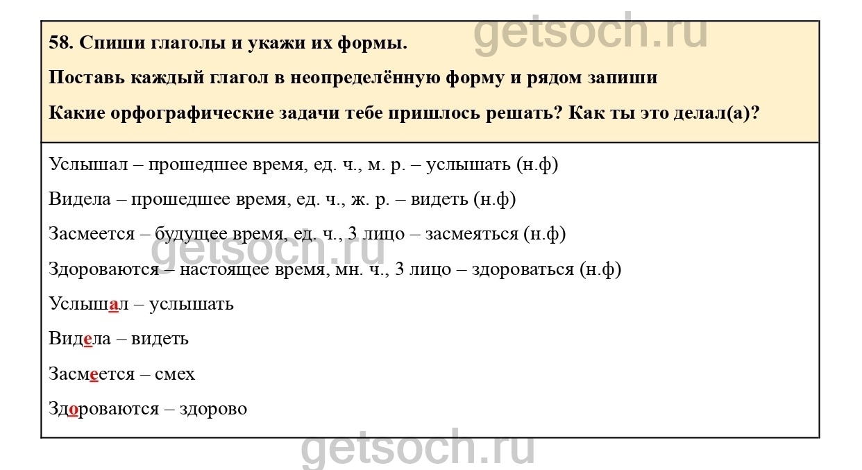 Рассмотрим ответы на Упражнение 58 из учебника по русскому языку для 4 класса Соловейчика