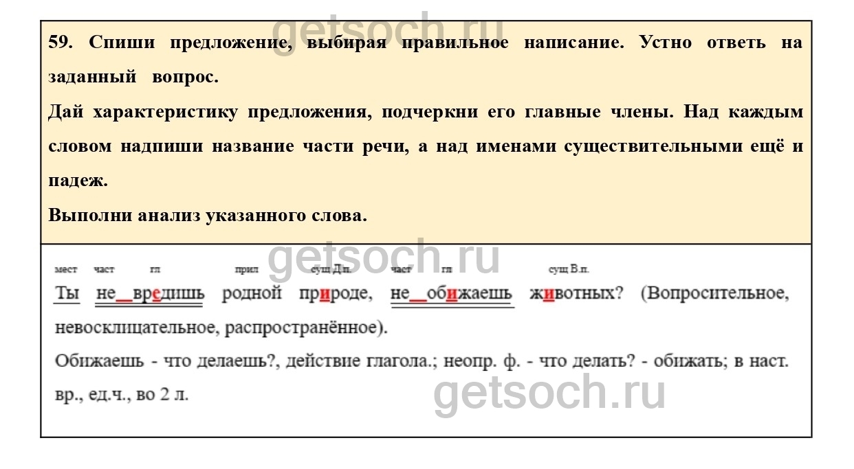 Рассмотрим ответы на Упражнение 59 из учебника по русскому языку для 4 класса Соловейчика