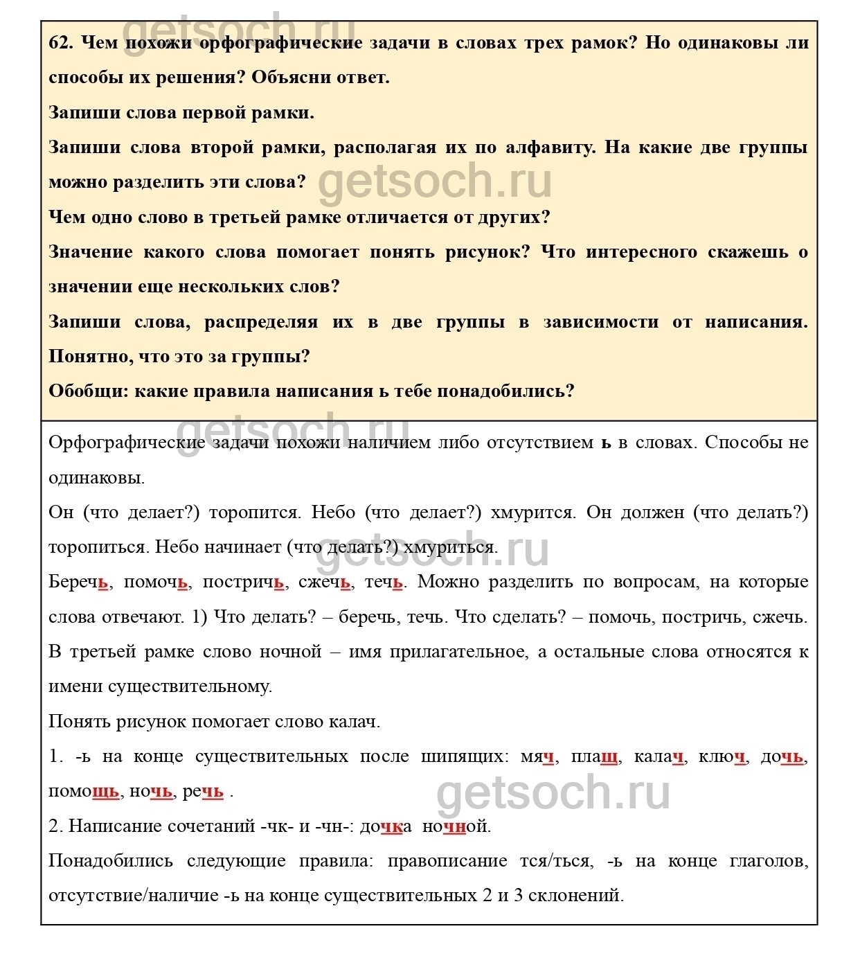 62. Чем похожи орфографические задачи в словах трех рамок? Но одинаковы ли способы их решения? Объясни ответ.