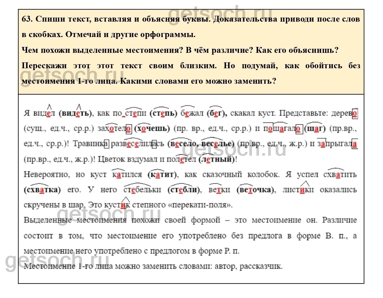 Рассмотрим ответы на Упражнение 63 из учебника по русскому языку для 4 класса Соловейчика