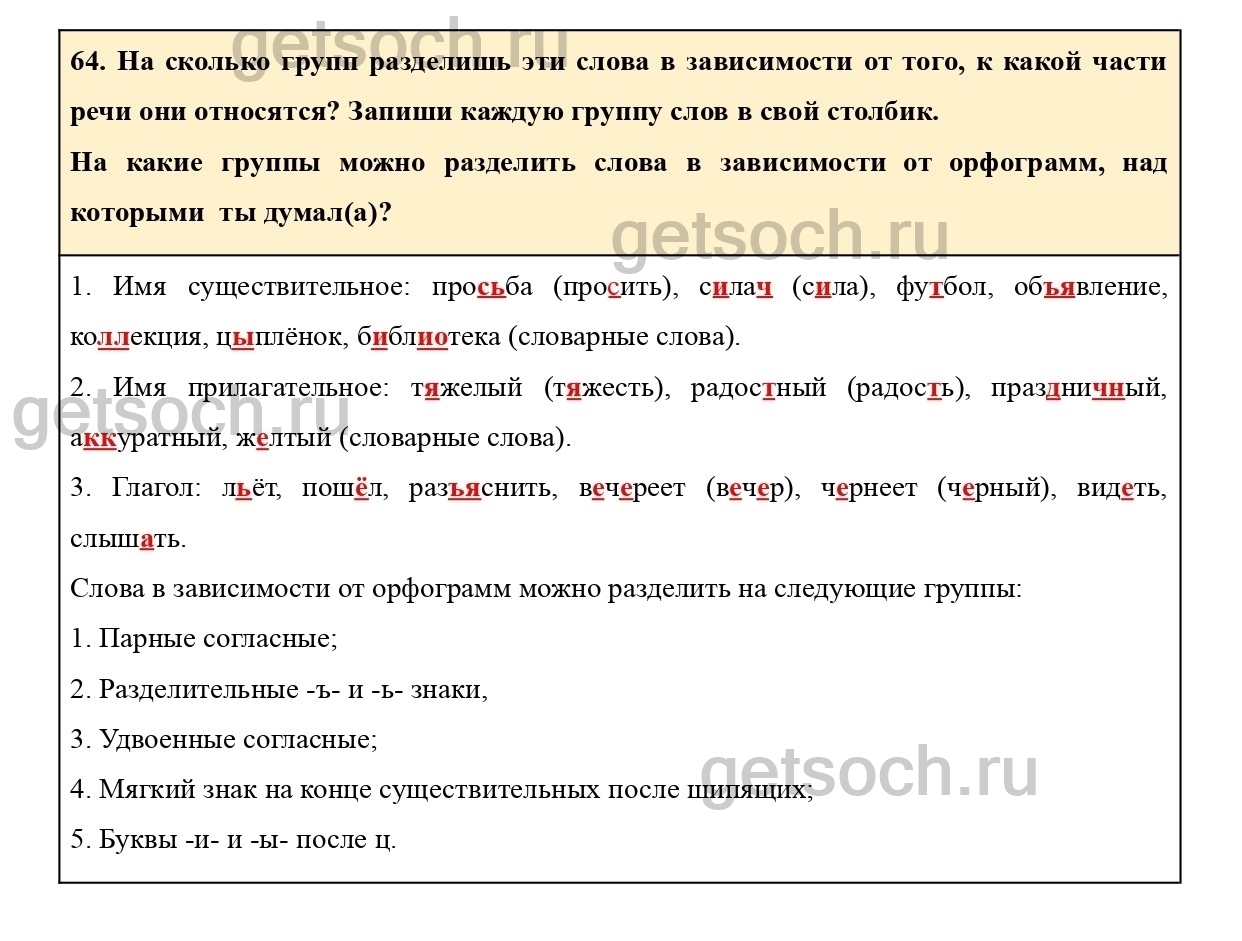 Рассмотрим ответы на Упражнение 64 из учебника по русскому языку для 4 класса Соловейчика