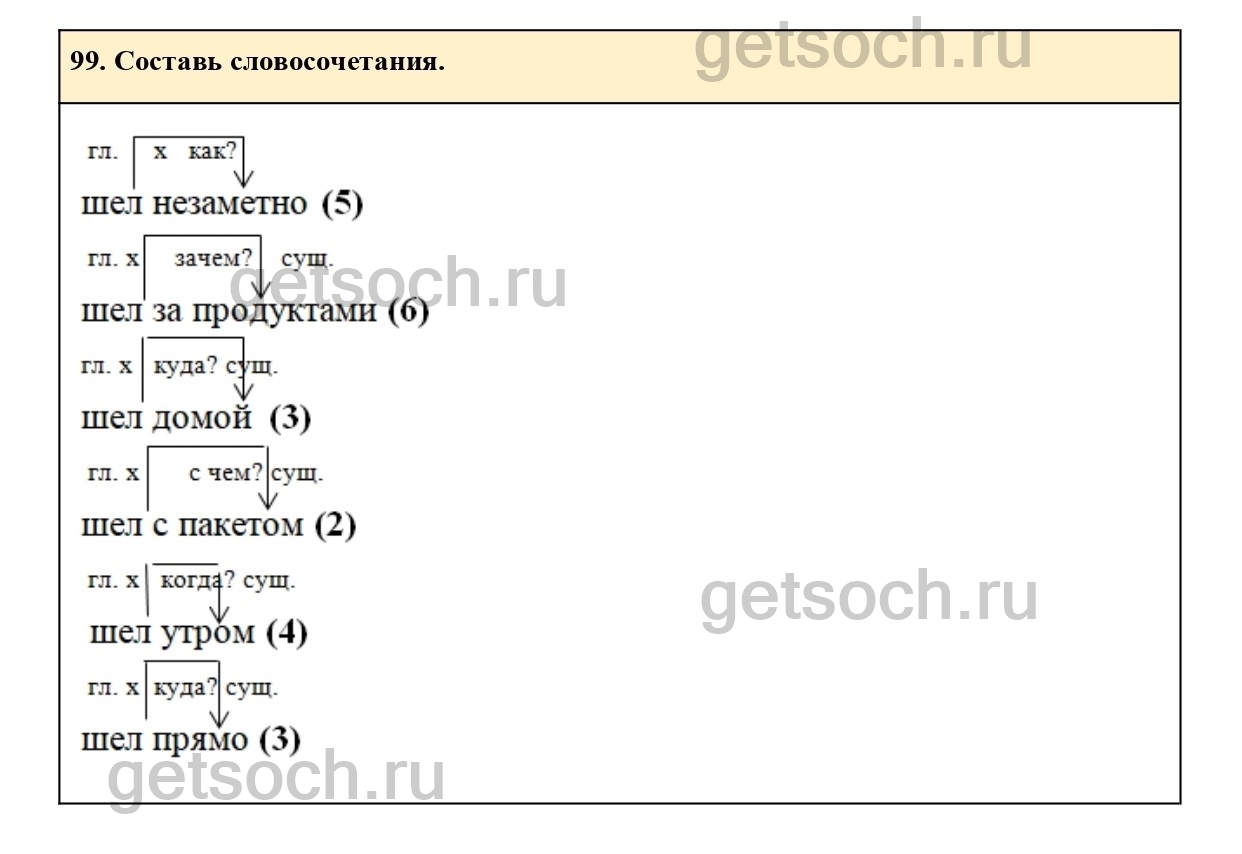 Рассмотрим ответы на Упражнение 99 из учебника по русскому языку для 4 класса Соловейчика