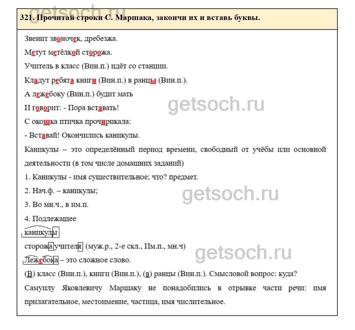 Рассмотрим ответы на Упражнение 321 из учебника по русскому языку для 4 класса Соловейчика