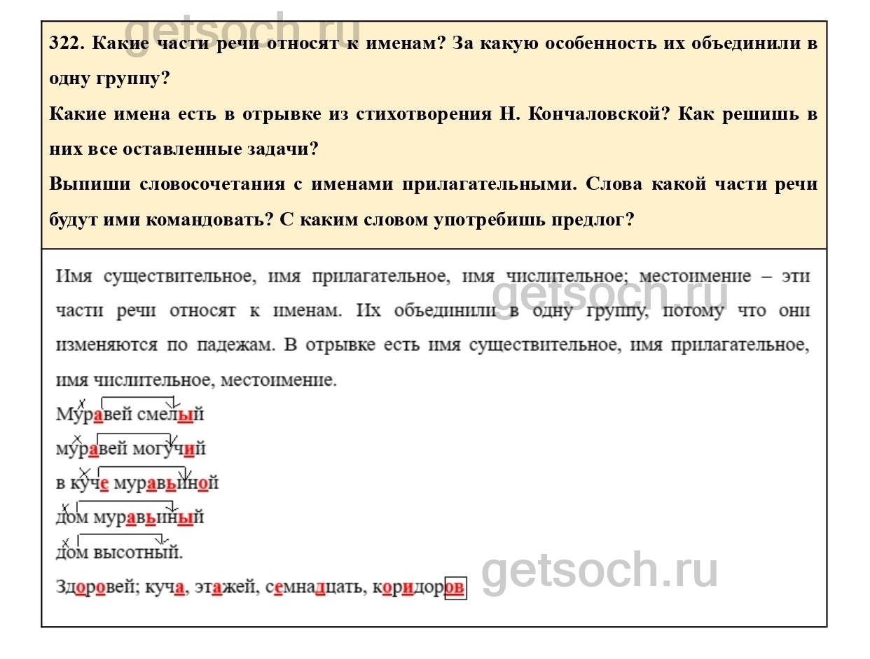 Рассмотрим ответы на Упражнение 322 из учебника по русскому языку для 4 класса Соловейчика