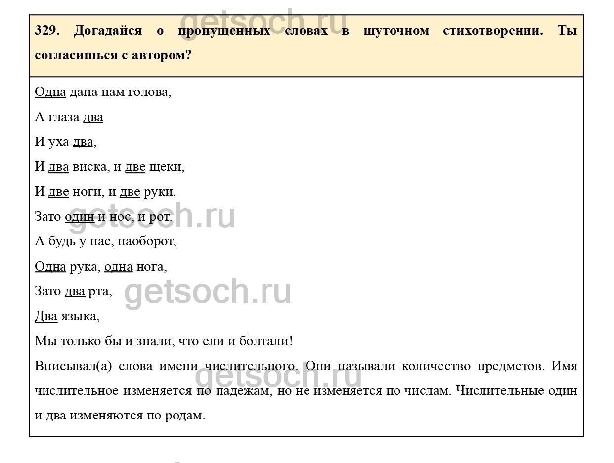 Рассмотрим ответы на Упражнение 329 из учебника по русскому языку для 4 класса Соловейчика