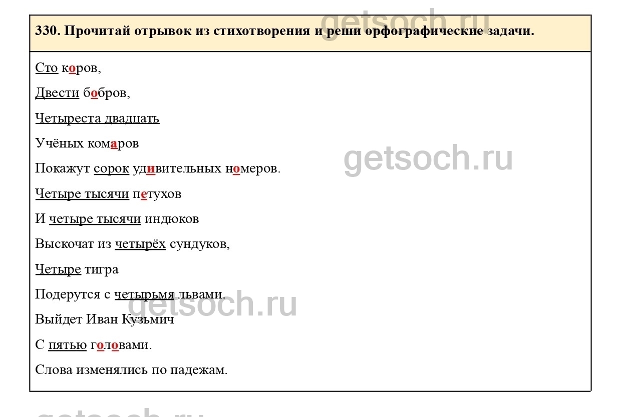 Рассмотрим ответы на Упражнение 330 из учебника по русскому языку для 4 класса Соловейчика