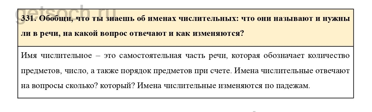 331. Обобщи, что ты знаешь об именах числительных: что они называют и нужны ли в речи, на какой вопрос отвечают и как изменяются?