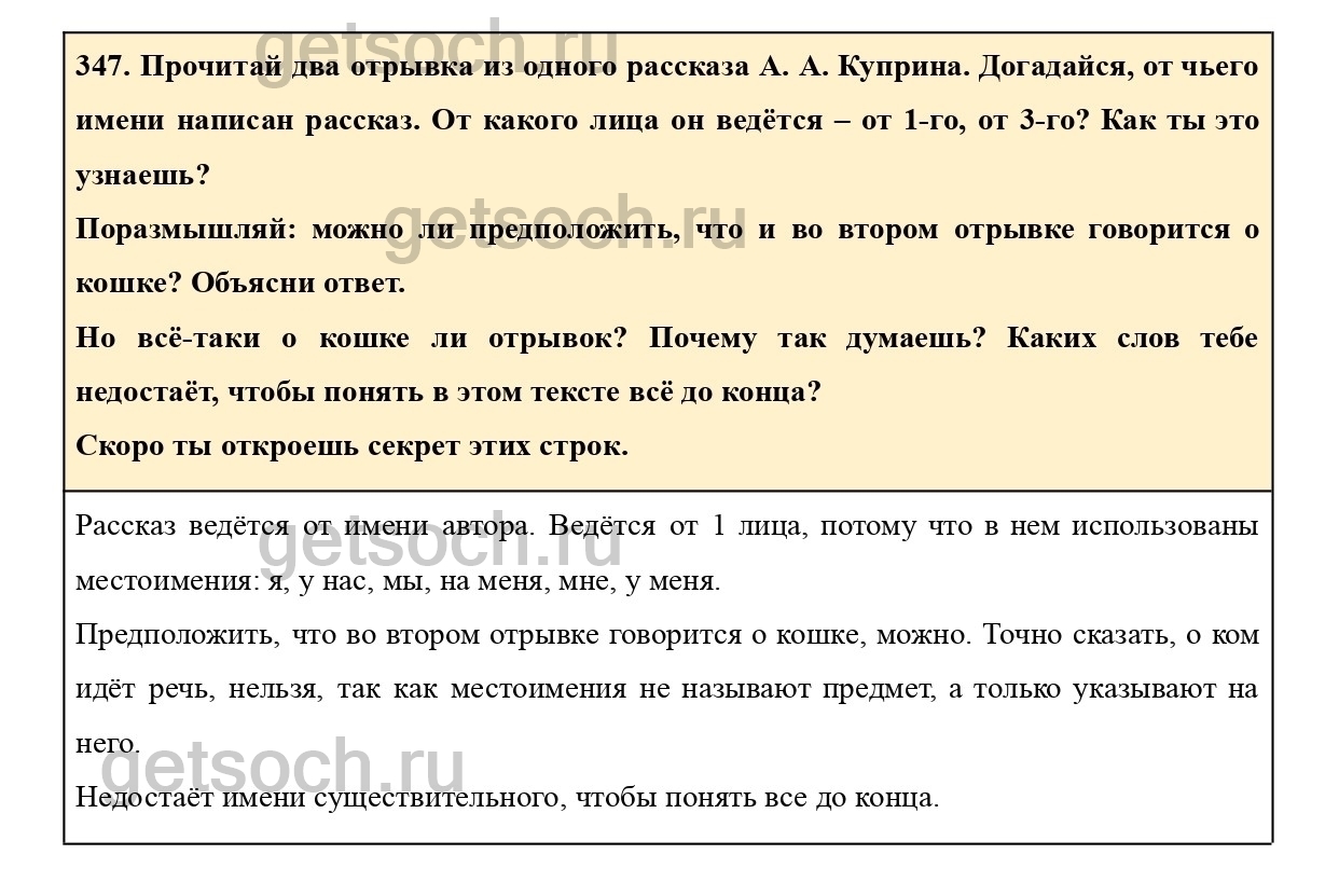 347. Прочитай два отрывка из одного рассказа А. А. Куприна. Догадайся, от чьего имени написан рассказ. От какого лица он ведётся – от 1-го, от 3-го? Как ты это узнаешь?