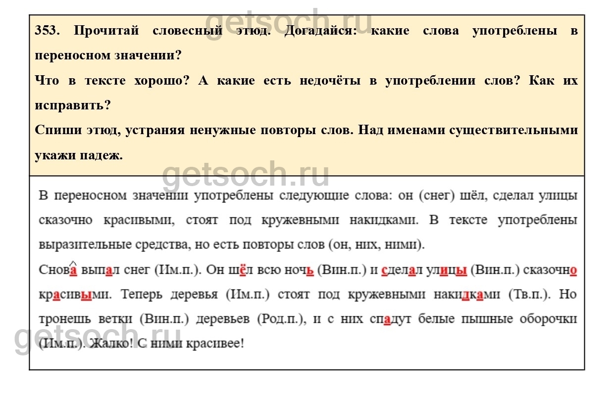 Рассмотрим ответы на Упражнение 353 из учебника по русскому языку для 4 класса Соловейчика
