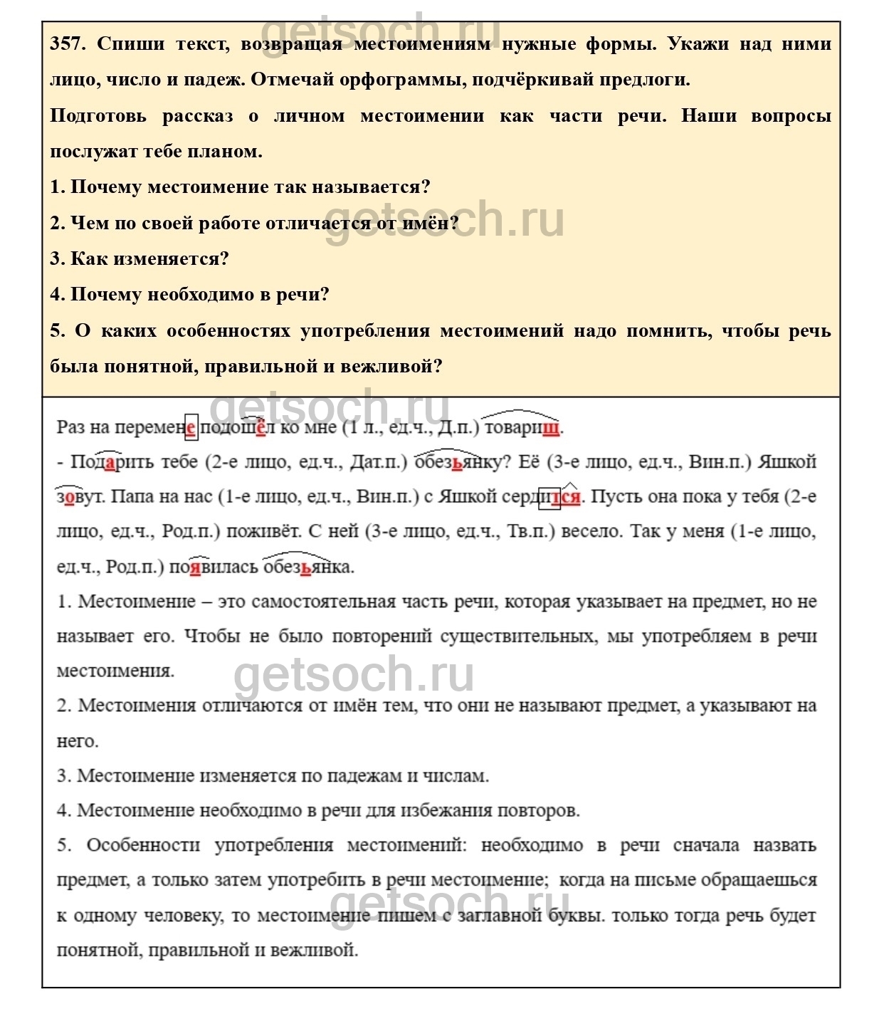 Рассмотрим ответы на Упражнение 357 из учебника по русскому языку для 4 класса Соловейчика
