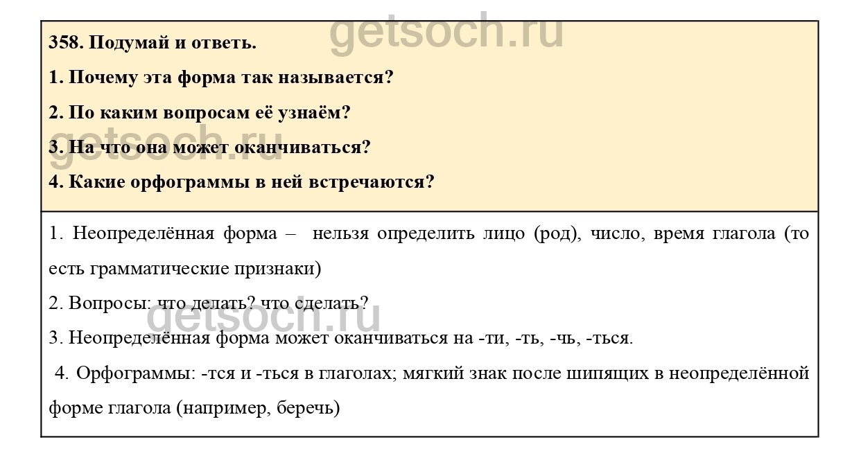 Рассмотрим ответы на Упражнение 358 из учебника по русскому языку для 4 класса Соловейчика