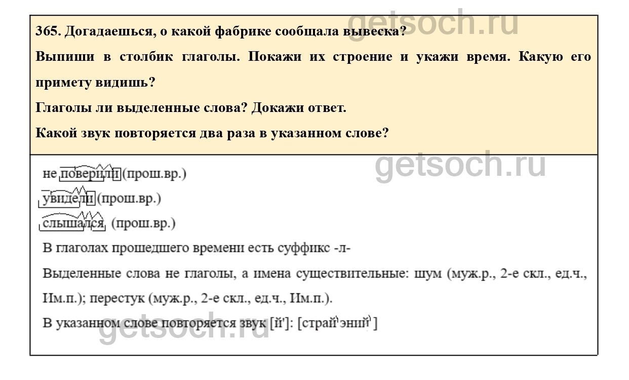 Рассмотрим ответы на Упражнение 365 из учебника по русскому языку для 4 класса Соловейчика